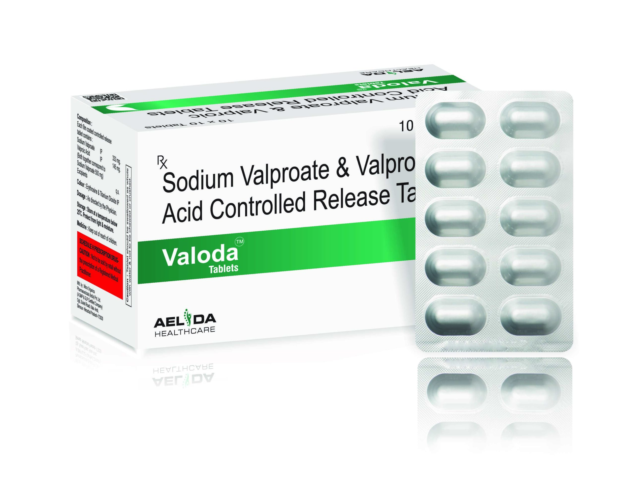 Sodium valporate 333 mg, valporic acid 145 mg both together correspond to sodium valporate 500 mg